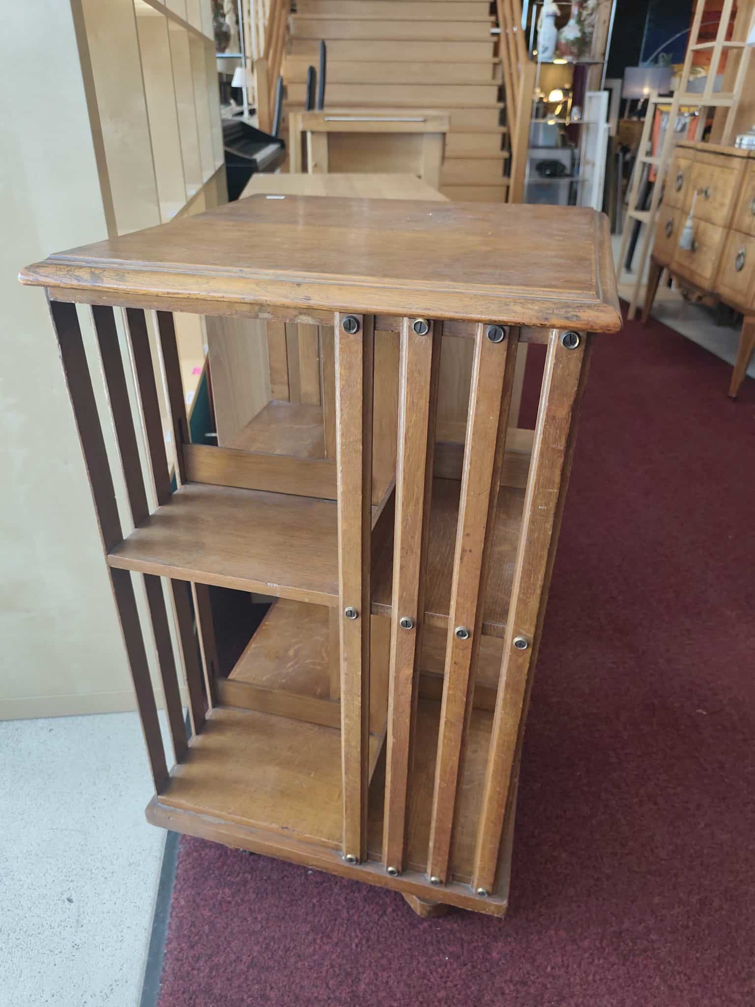 Une bibliothèque tournante pratique et élégante, idéale pour organiser votre espace et apporter une touche chaleureuse à votre intérieur.