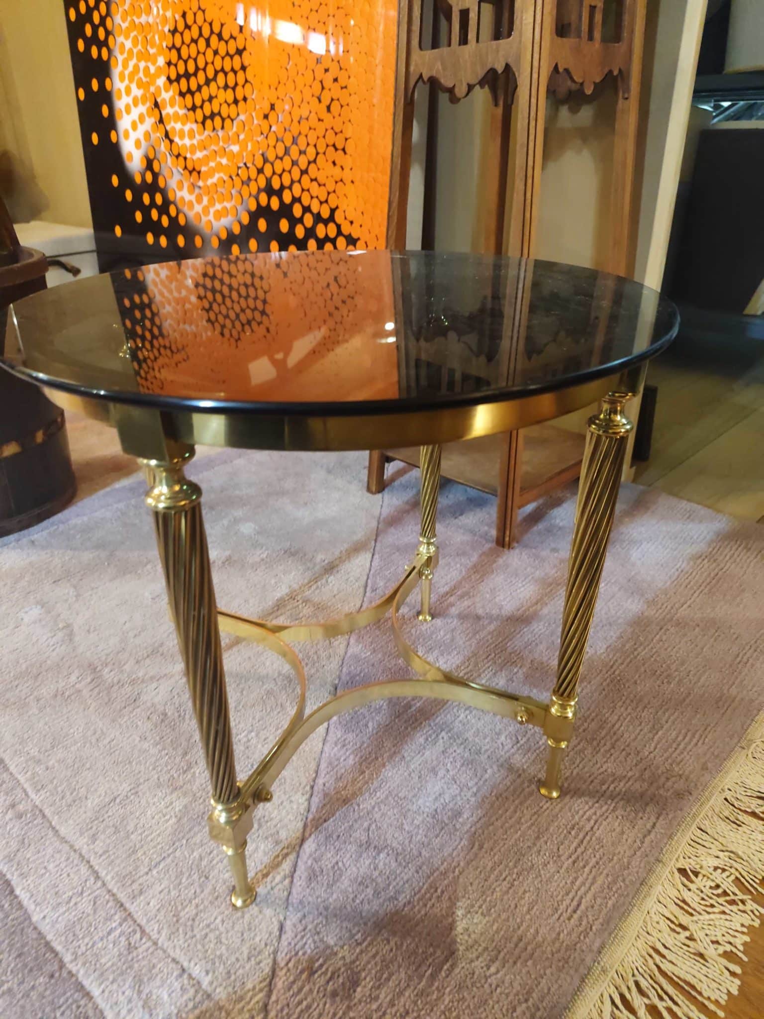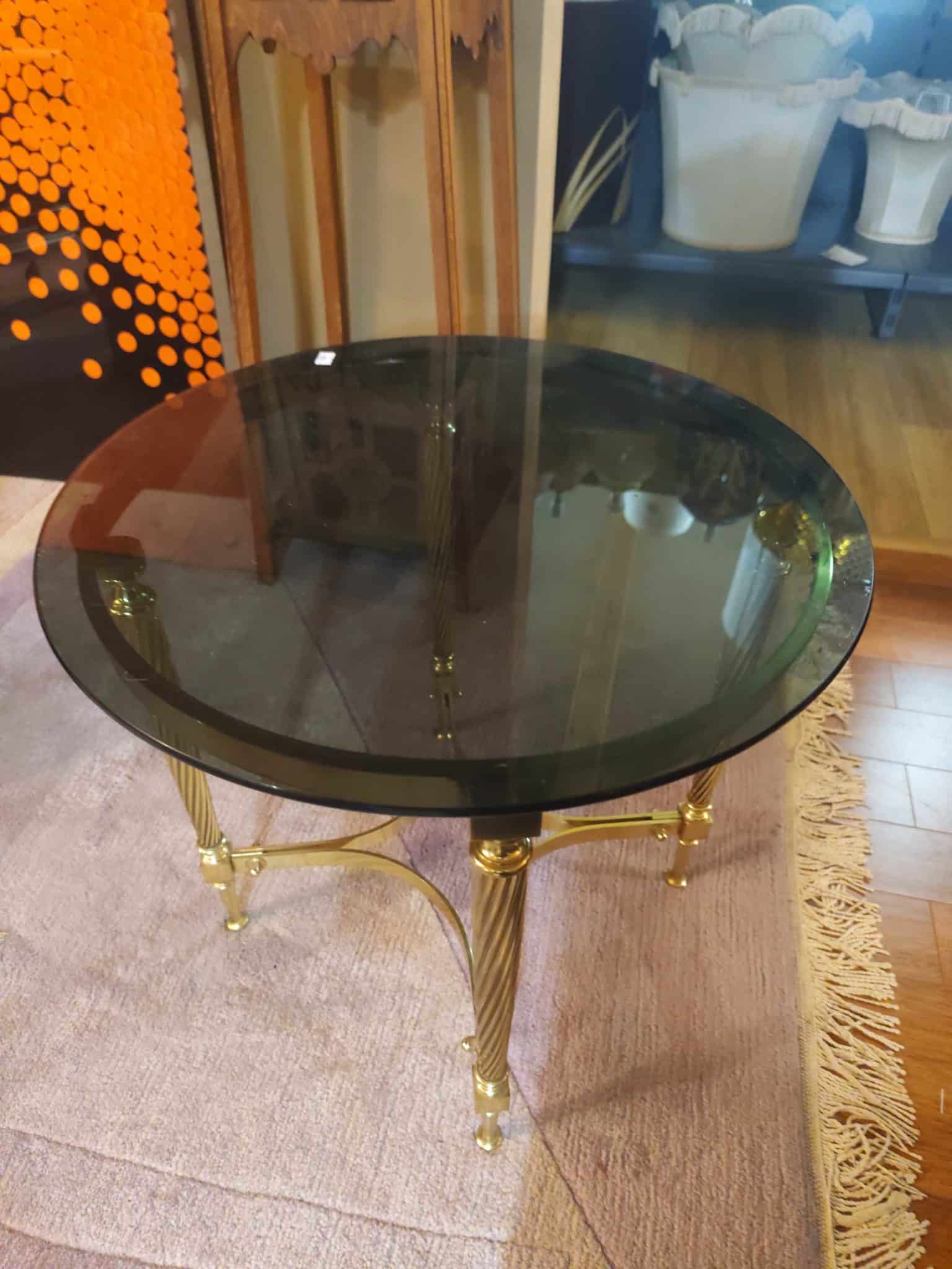 Table basse en laiton et verre fumé