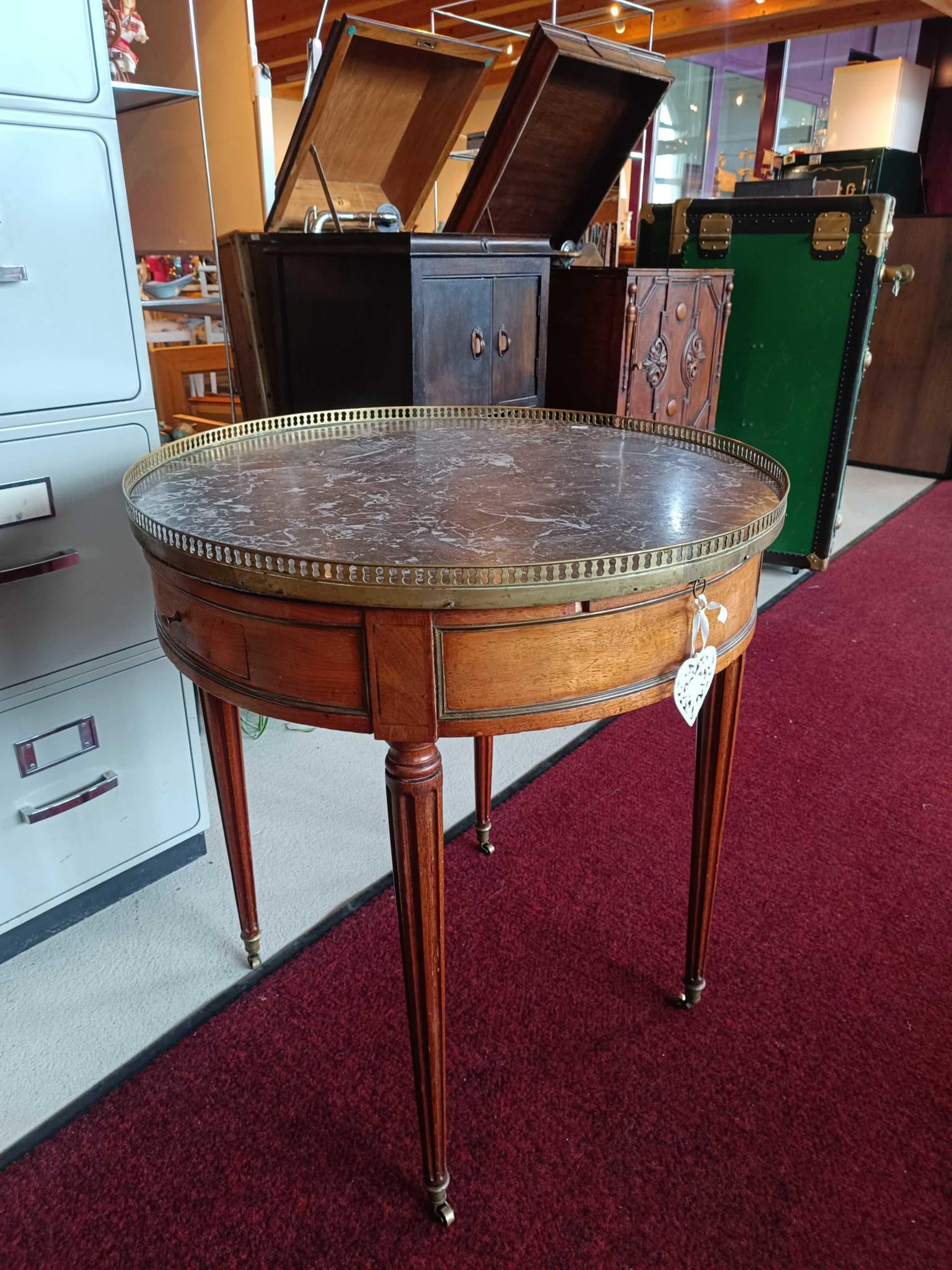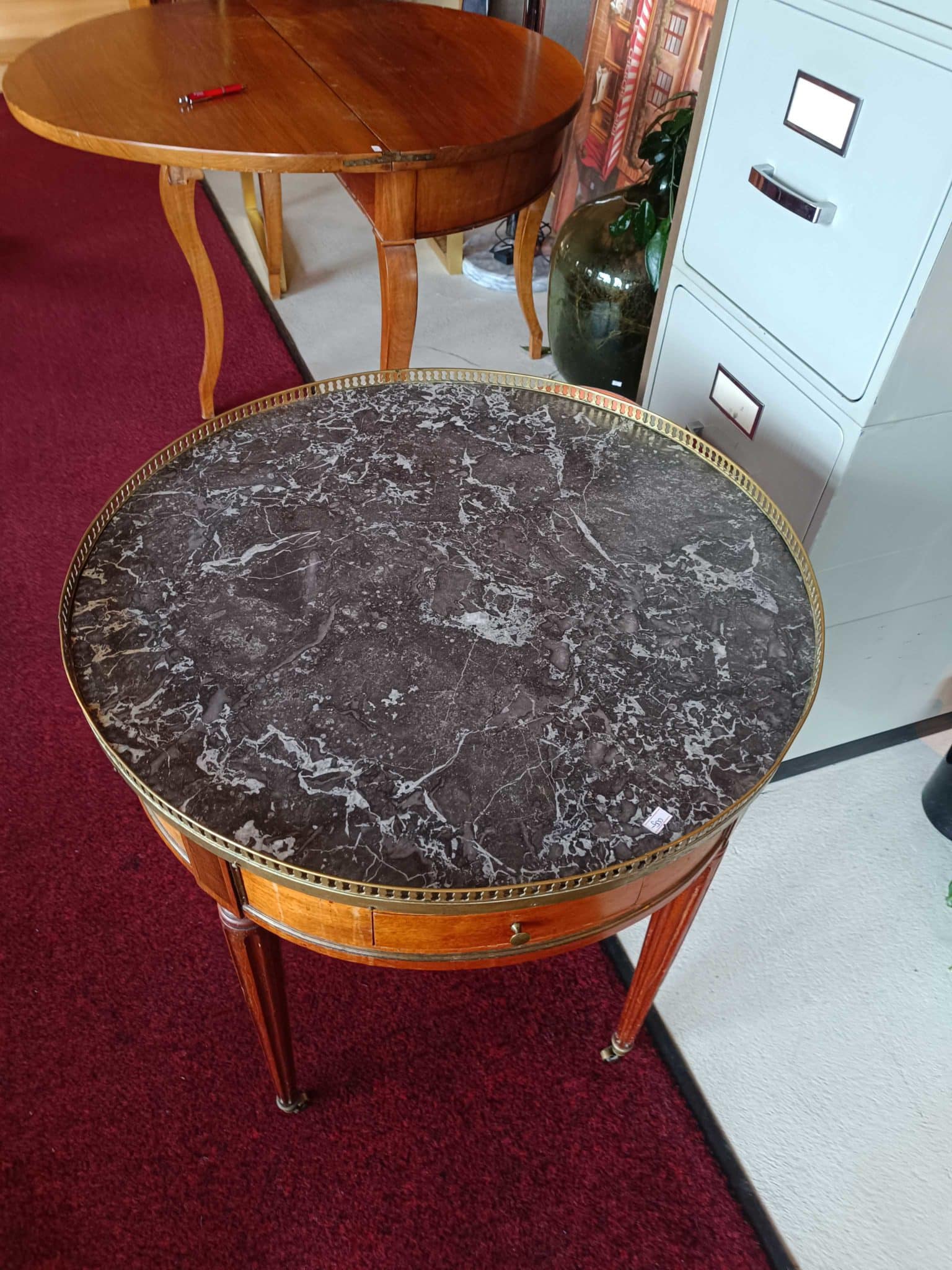 Une table bouillotte élégante et raffinée, idéale pour un jeu de cartes ou des dîners intimes. Son design classique et ses dimensions compactes en font une pièce de mobilier de caractère, parfaite pour les amateurs de charme et d’histoire.